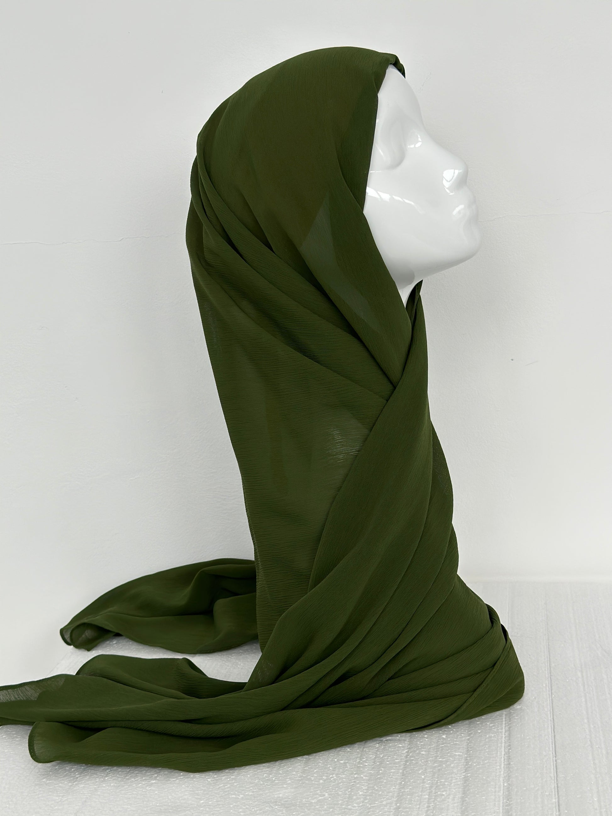 HIJAB MOUSSELINE RAYE À ENFILER VERT BOUTEILLE